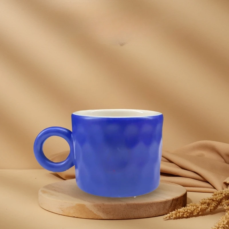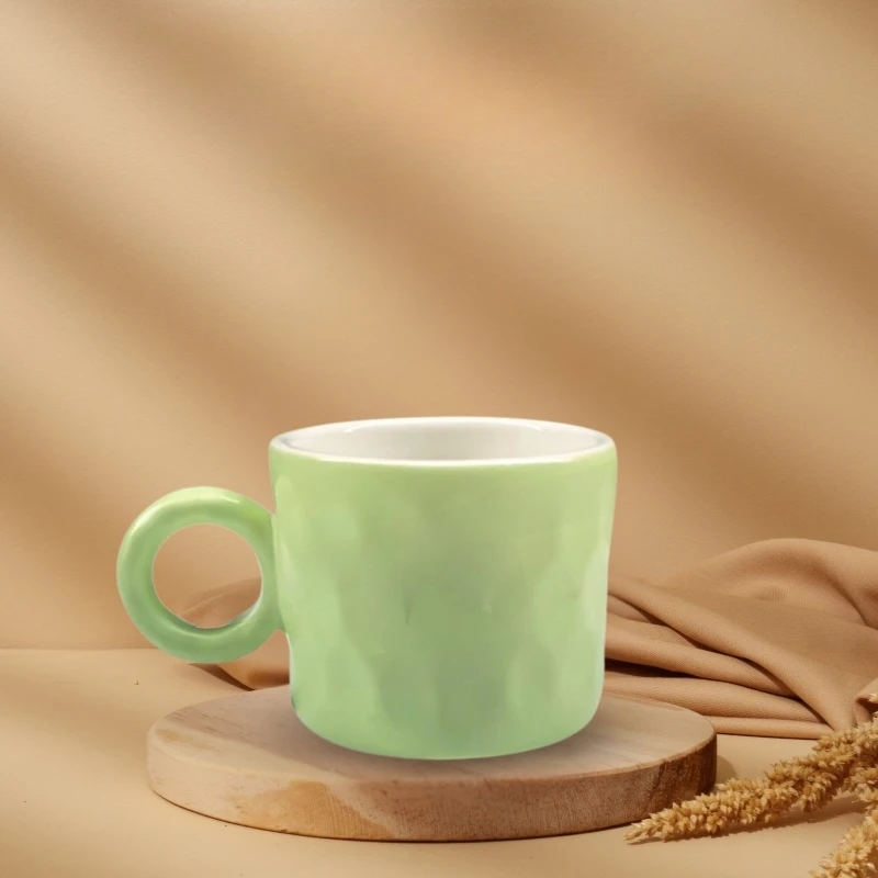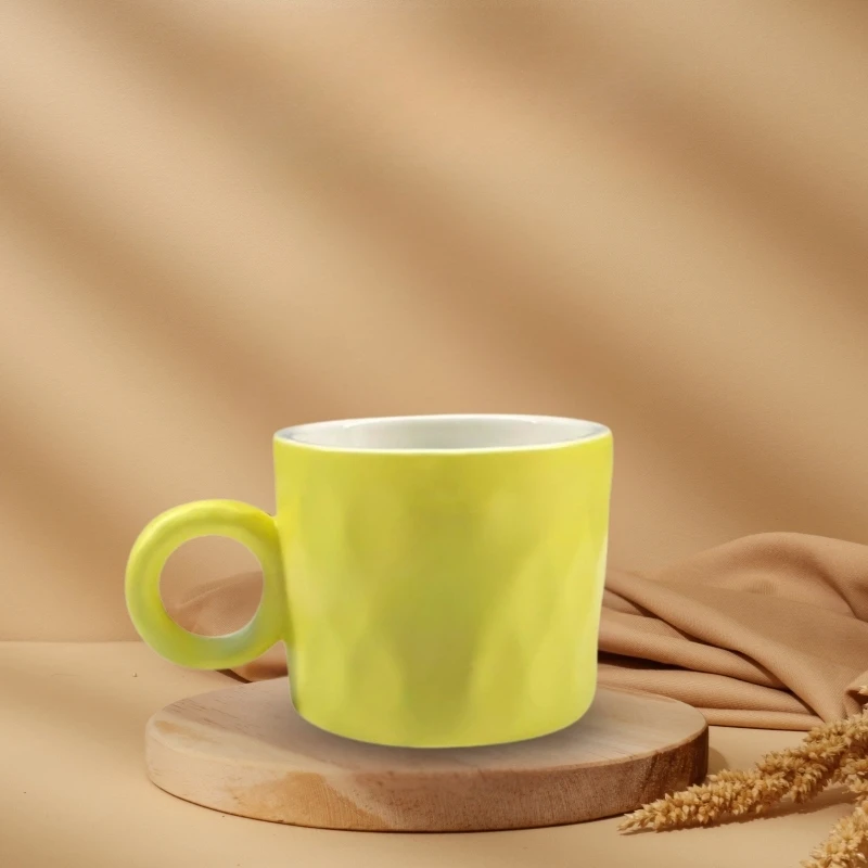 Với thiết kế dáng lùn chắc tay kết hợp họa tiết tổ ong nổi bật, chiếc cốc sứ men màu này mang lại cảm giác hiện đại và khác biệt cho người sử dụng.