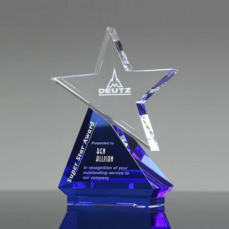 Cúp ngôi sao trao giải thưởng doanh nghiệp, cúp tôn vinh cao cấp, cúp pha lê vinh danh được sản xuất từ pha lê trong. Kết hợp thêm một số màu khác để sản phậm được đẹp hơn.