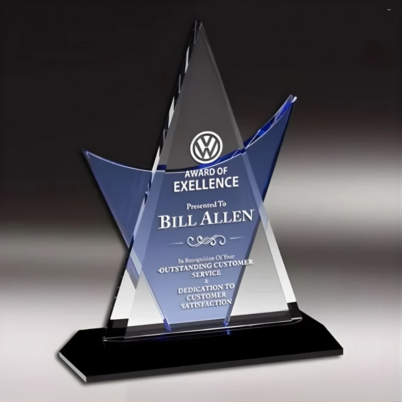 Kỷ niệm chương hai ngọn lửa, biểu trưng tôn vinh cao cấp, kỷ niệm chương vinh danh được sản xuất từ pha lê trong.