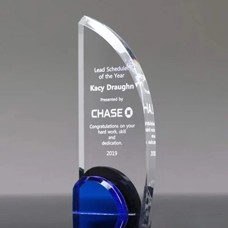 Kỷ niệm chương khen thưởng cao 20cm, biểu trưng tôn vinh cao cấp, kỷ niệm chương vinh danh được sản xuất từ pha lê trong. Quà tặng pha lê này kết hợp thêm một số màu khác để sản phậm được đẹp hơn. Nội dung theo yêu cầu riêng.