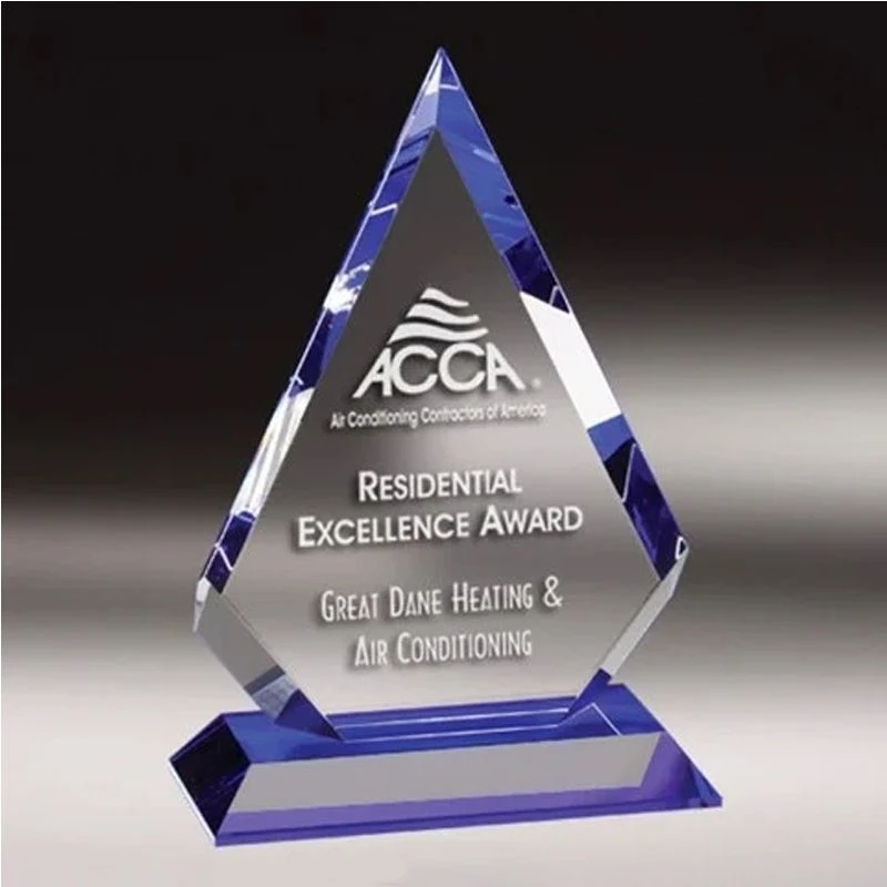 Kỷ niệm chương khen thưởng nhân viên của năm, kỷ niệm chương tôn vinh cao cấp, quà tặng vinh danh được sản xuất từ pha lê trong. Quà tặng pha lê này kết hợp thêm một số màu khác để sản phậm được đẹp hơn. Nội dung theo yêu cầu riêng.