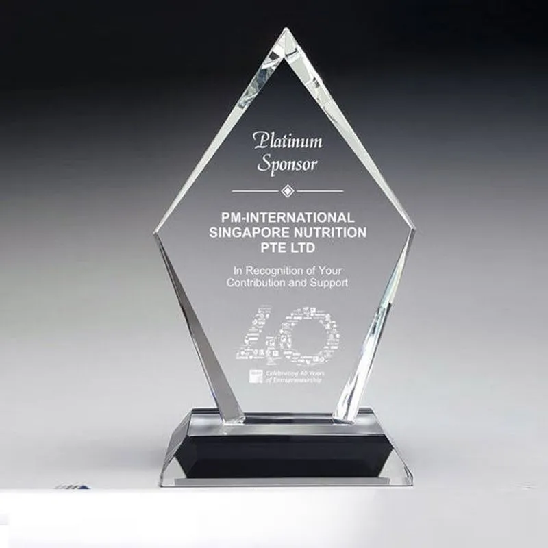 Kỷ niệm chương kỷ niệm 40 năm, biểu trưng tôn vinh cao cấp, kỷ niệm chương vinh danh được sản xuất từ pha lê trong. Quà tặng pha lê này kết hợp thêm một số màu khác để sản phậm được đẹp hơn. Nội dung theo yêu cầu riêng.